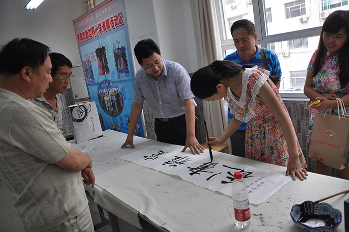 2014年7月13日由济南市硬笔书法家协会、济南市槐荫区教育局共同主办的汉字书写教学“大家谈“现场交流会在新世界小学多媒体教室举行,来自我市槐荫区及其他市区书法老师和书法爱好者130余人参加,活动由区语委办主任杨秀利主持,槐荫区教育局领导致辞,承办单位新世界小学校长董庆峰讲话,汇报了该校开展书法教育工作,会上先后有赵娜、孔庆波、李贺战、任刚 等汇报了各自开展书法教育的经验和体会。之后协会书法家回答参会人员的提问,互动交流、现场气氛活跃,会后协会专家到新世界小学参观该校现场书法教学并交流指导,济南市硬笔书法家协会。