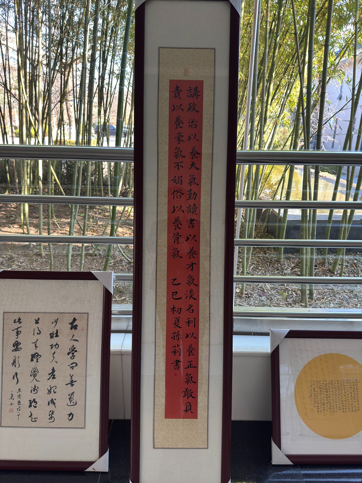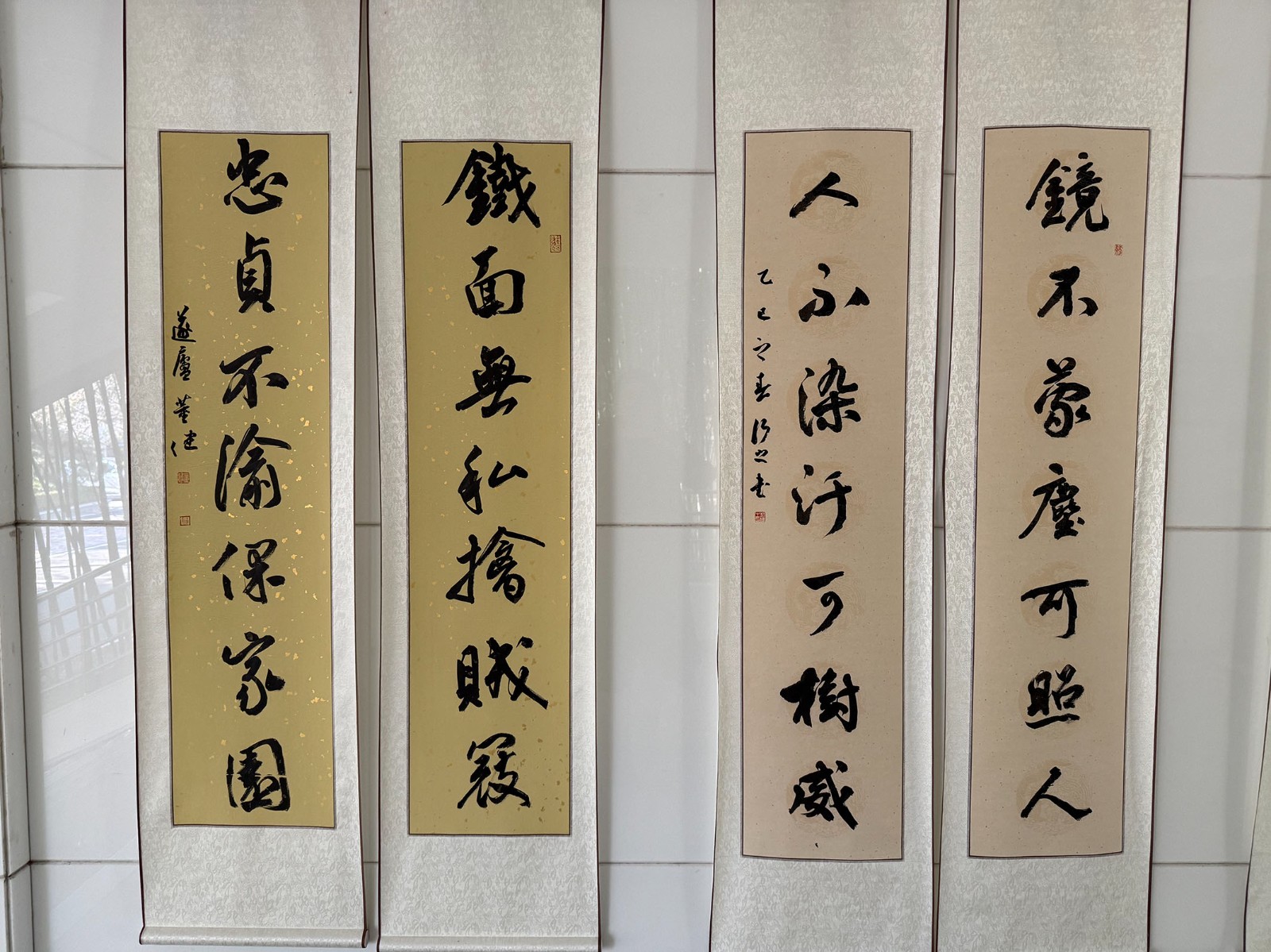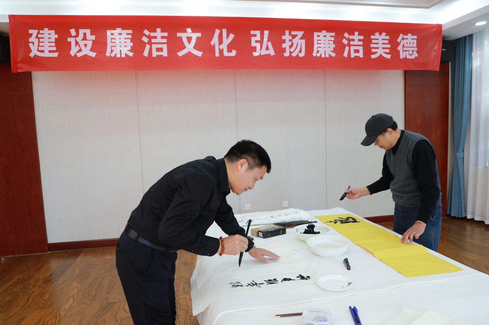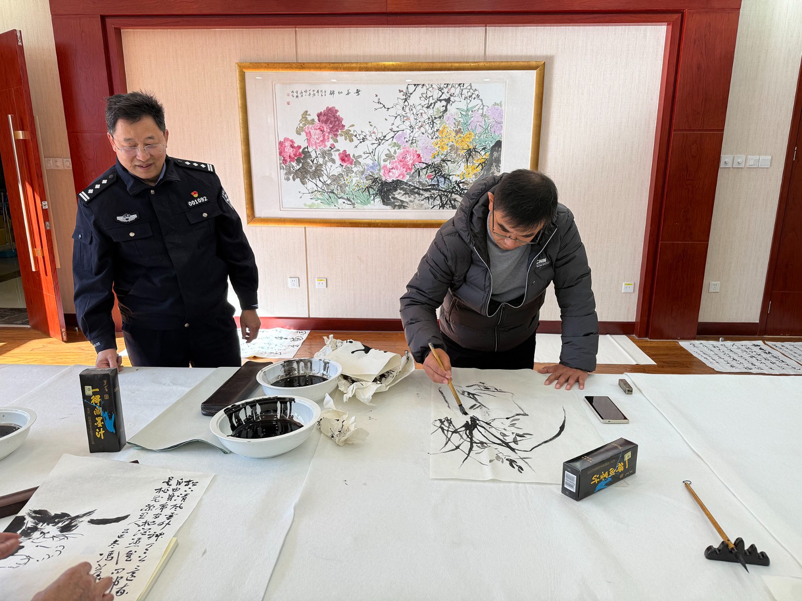 本次活动由协会党支部书记刘永和、会长宋嫘嫘带队,副主席冯少华、郭立、刘汝文、孔庆波一同参加。活动现场笔墨飘香、氛围庄重,书法家们以笔为媒,将廉洁理念与书法艺术深度融合,即兴挥毫创作了一批主题鲜明、笔力遒劲的作品。“清风劲节”“廉润警心”“忠诚担当”等一幅幅作品,既彰显了书法的艺术魅力,更传递了崇廉尚洁的价值追求。这些作品以及理事们前期精心创作的以廉政为主题的书画作品均已悬挂于基地文化长廊、成为浸润警心、涵养正气的生动载体。