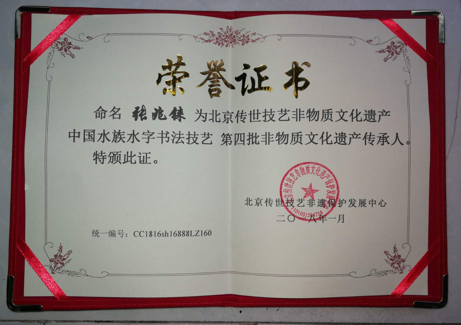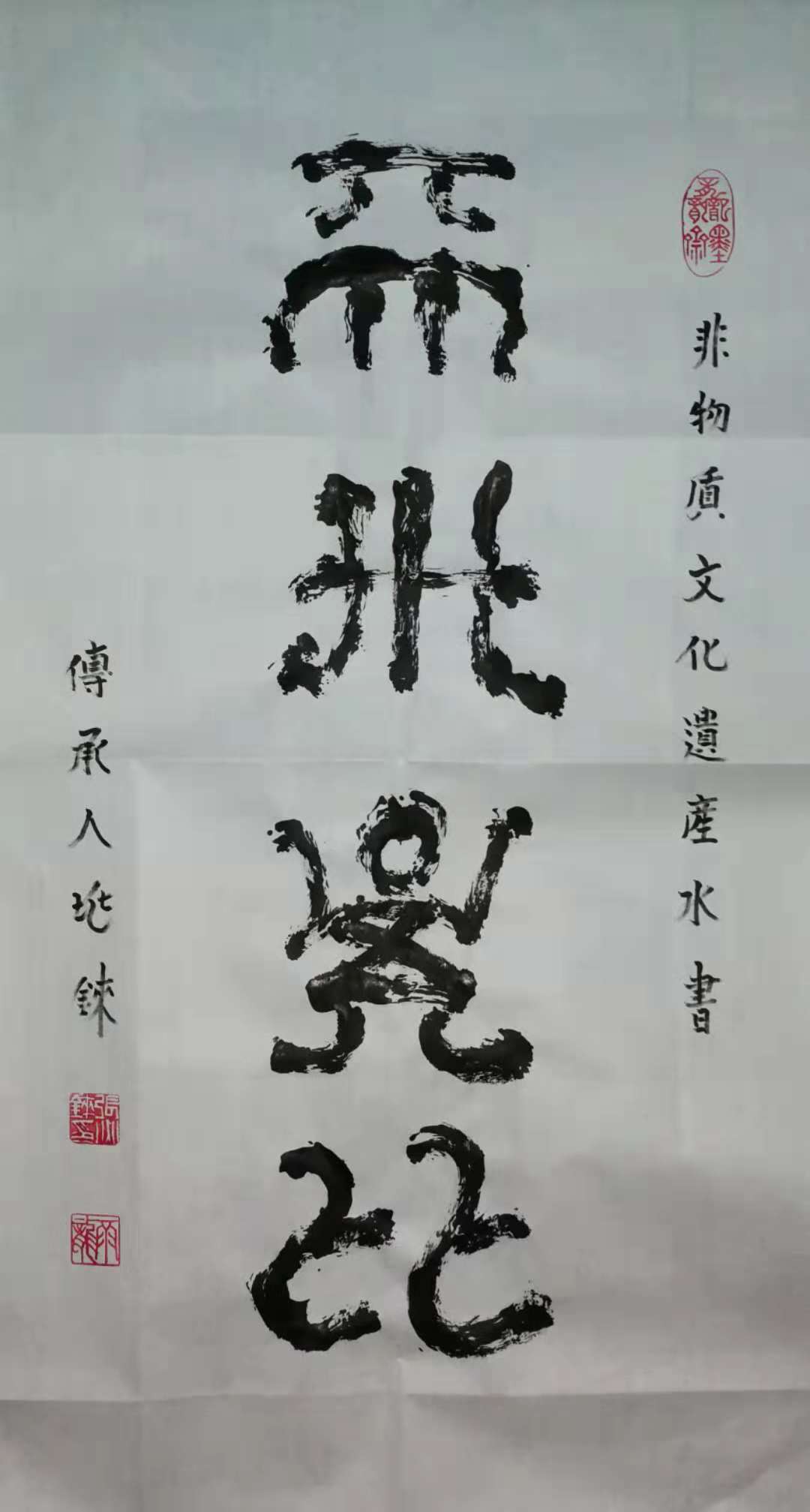 张兆铼,非物质文化遗产传承人,国宾礼艺术家 ,中国硬笔书法协会会员,济南市硬笔书法家协会理事,张兆铼的水族水文书法向各位提供一个反面教材,以期唤起人们对中华传统文化非遗水书的传承.硬笔大字书法作为表象,充分演绎四气交替、阴阳平衡、升降沉浮、天人合一之愿景。金属硬笔,宣纸书写 ,版权登记,国礼作品,大字书法,跌宕奇险,苍郁雄浑,方圆相济,疾涩相兼,有着强烈的时代艺术个性,为中国书法工具家族增添了一份极有价值的载体,使硬笔大字书法得以传承,同时也开创了中国硬笔书法的新天地,实现了硬笔书法的中国梦和世界梦。
