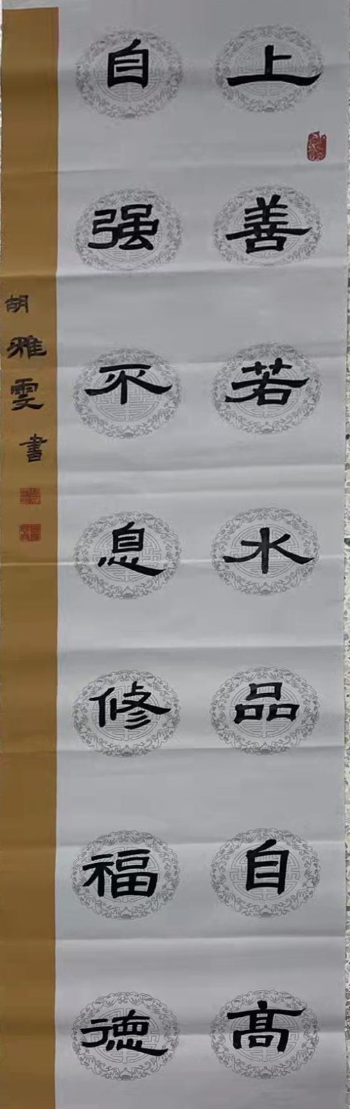 胡雅雯,13岁,就读于华东师范大学济南实验学校,性格开朗、活泼,有很多的兴趣比如:书法,舞蹈,声乐、跳绳、游泳。自七岁学习书法,曾临摹王羲之的《兰亭序》、颜真卿《颜勤礼碑》、《多宝塔碑》、隶属《乙瑛碑》,学习书法5年来,感恩遇到的每位恩师指导与帮助,书法水平不断提高,取得了许多的优异成绩,从中找到了学习的乐趣。