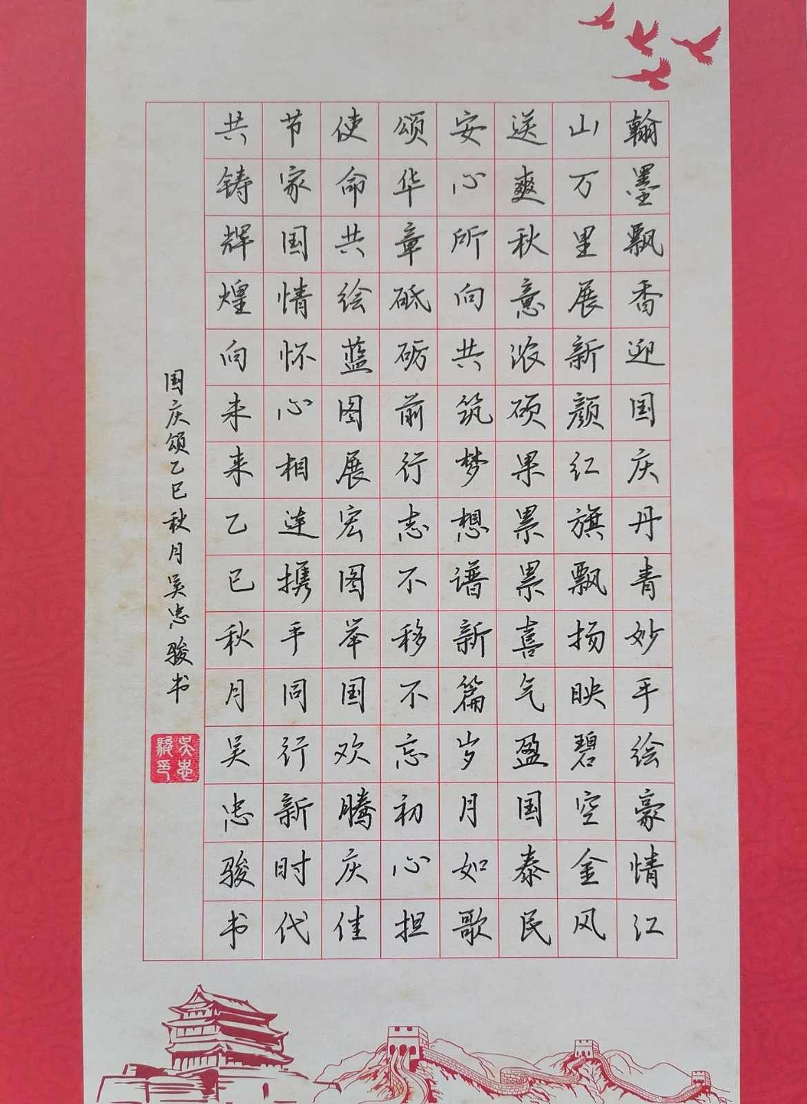 笔墨为伴,岁月沉香。从一笔一画的认真,到一纸一帖的坚持,吴忠骏同学在书法的道路上稳步前行,用坚持书写成长,用笔墨点亮青春。愿他继续以笔为志、以字养心,在墨香中坚守初心,在书写中遇见更好的自己,在未来的书法之路上步履不停、再攀新高!
