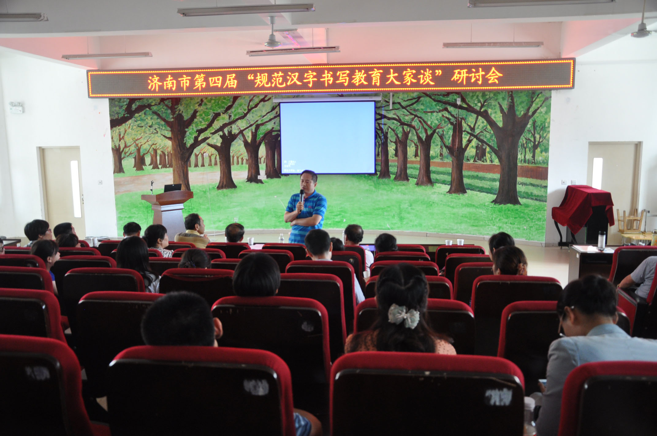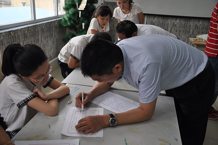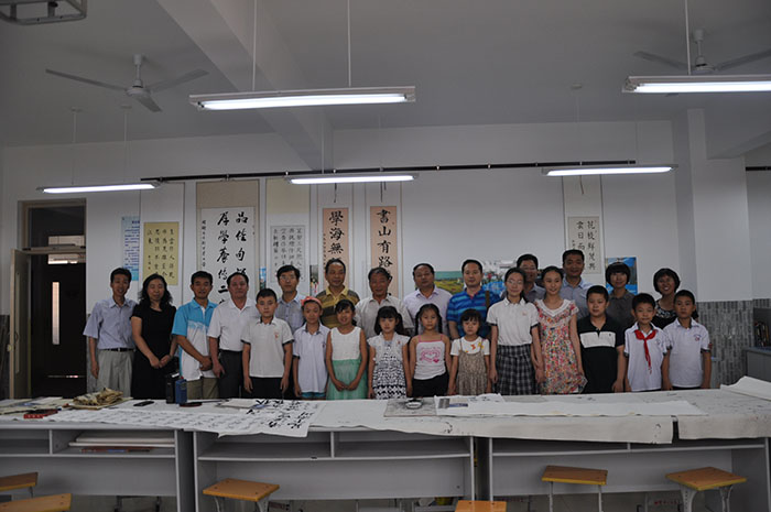 2014年7月13日由济南市硬笔书法家协会、济南市槐荫区教育局共同主办的汉字书写教学“大家谈“现场交流会在新世界小学多媒体教室举行,来自我市槐荫区及其他市区书法老师和书法爱好者130余人参加,活动由区语委办主任杨秀利主持,槐荫区教育局领导致辞,承办单位新世界小学校长董庆峰讲话,汇报了该校开展书法教育工作,会上先后有赵娜、孔庆波、李贺战、任刚 等汇报了各自开展书法教育的经验和体会。之后协会书法家回答参会人员的提问,互动交流、现场气氛活跃,会后协会专家到新世界小学参观该校现场书法教学并交流指导,济南市硬笔书法家协会。