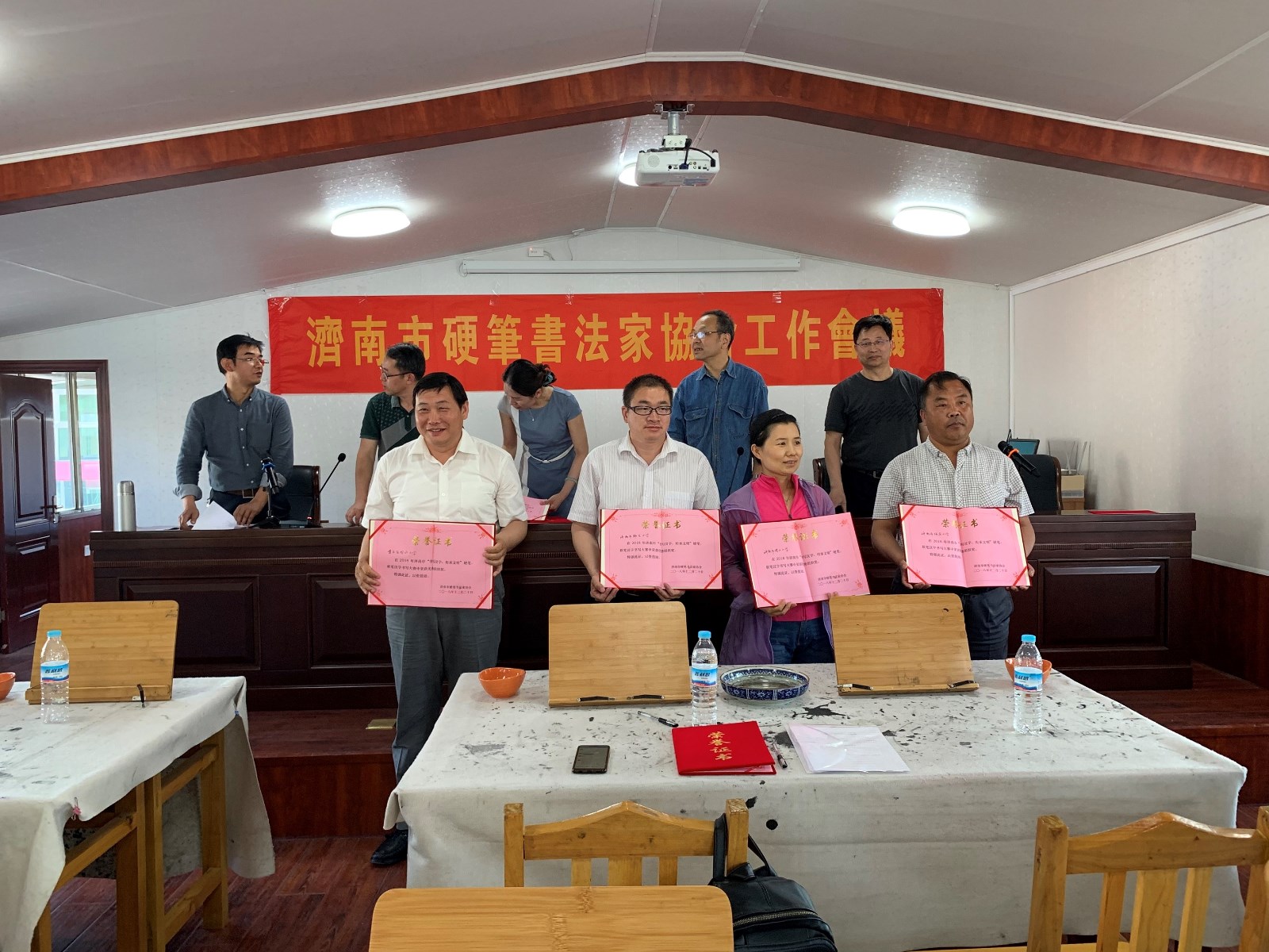 5月21日下午,济南市硬笔书法家协会工作会议在济南南部山区朋源文化会馆召开,参加本次会议的有协会班子领导宋嫘嫘、刘永和、刘汝文、郭立、王军,济南市硬笔书法家协会硬笔书法素质教育示范基地的代表,在2018年济南市“书写汉字、传承文明”硬笔、软笔汉字书写大赛中获得优秀组织奖的单位代表及特邀嘉宾。
