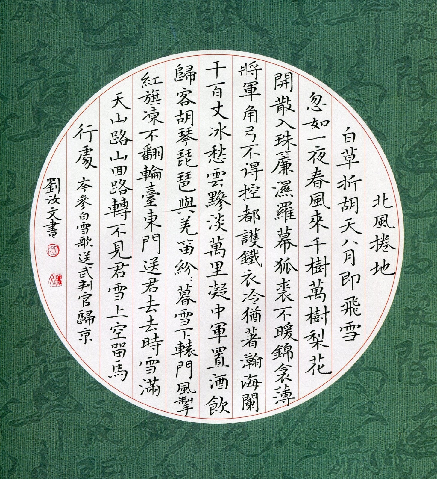 (五)如何正确临帖的问题。一本字帖,到底临多长时间就可以换帖,这要看学习者处于哪个阶段。初学书法,针对一种字体选择好适合自己的字帖后,就要拿出很长的时间去临习。我给学生推荐的是欧体《九成宫》,《九成宫》碑字体险峻、结构严整,规范性强,学习起来难度较大,正因为如此,我把此帖作为学生的入门帖,就是为了通过学习此帖给学生练练手,解决基本笔画和间架结构问题,同时通过强化训练,重点提高学生的控笔能力,还可以解决楷书中涉及到的笔法问题。这个过程大约需要一年左右,分三个阶段进行。第一个阶段四至六个月,即从帖中随便选择简单的字认真临习,通过这些简单字练习基本笔画,我在辅导过程中,侧重点放在基本笔画上,间架结构不作为重点;第二个阶段四个月左右,这时候基本笔画已经写得很到位了,便要求学生从字帖中按照由简到繁的顺序选字进行练习,这时候讲评学生作业,我讲的主要是诸如“上下对正”“笔画均匀”“左低右高”“互相穿插”等结构方面的问题,帮学生逐项解决学习中遇到的结构问题,直到与原帖相比基本一样为止。第三个阶段三个月左右,这属于巩固阶段。基本笔画和间架结构解决了,便可以对字帖进行通临,从头至尾一遍一遍临习,巩固所学知识。